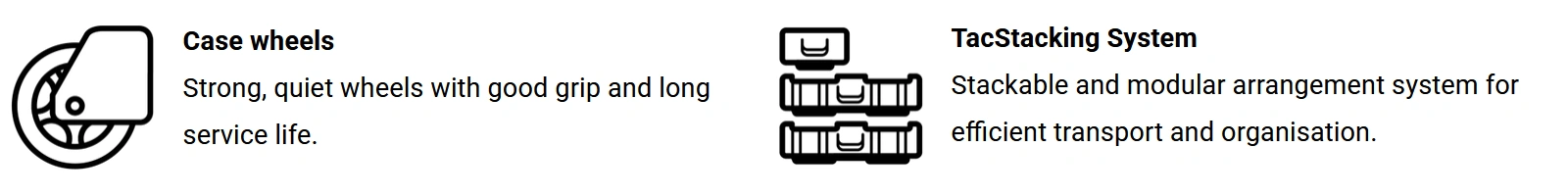 Thanks to the TacStacking system, it can also be securely stacked with other Tacstack cases.